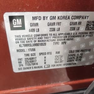 VIN KL79MRSLXMB010520