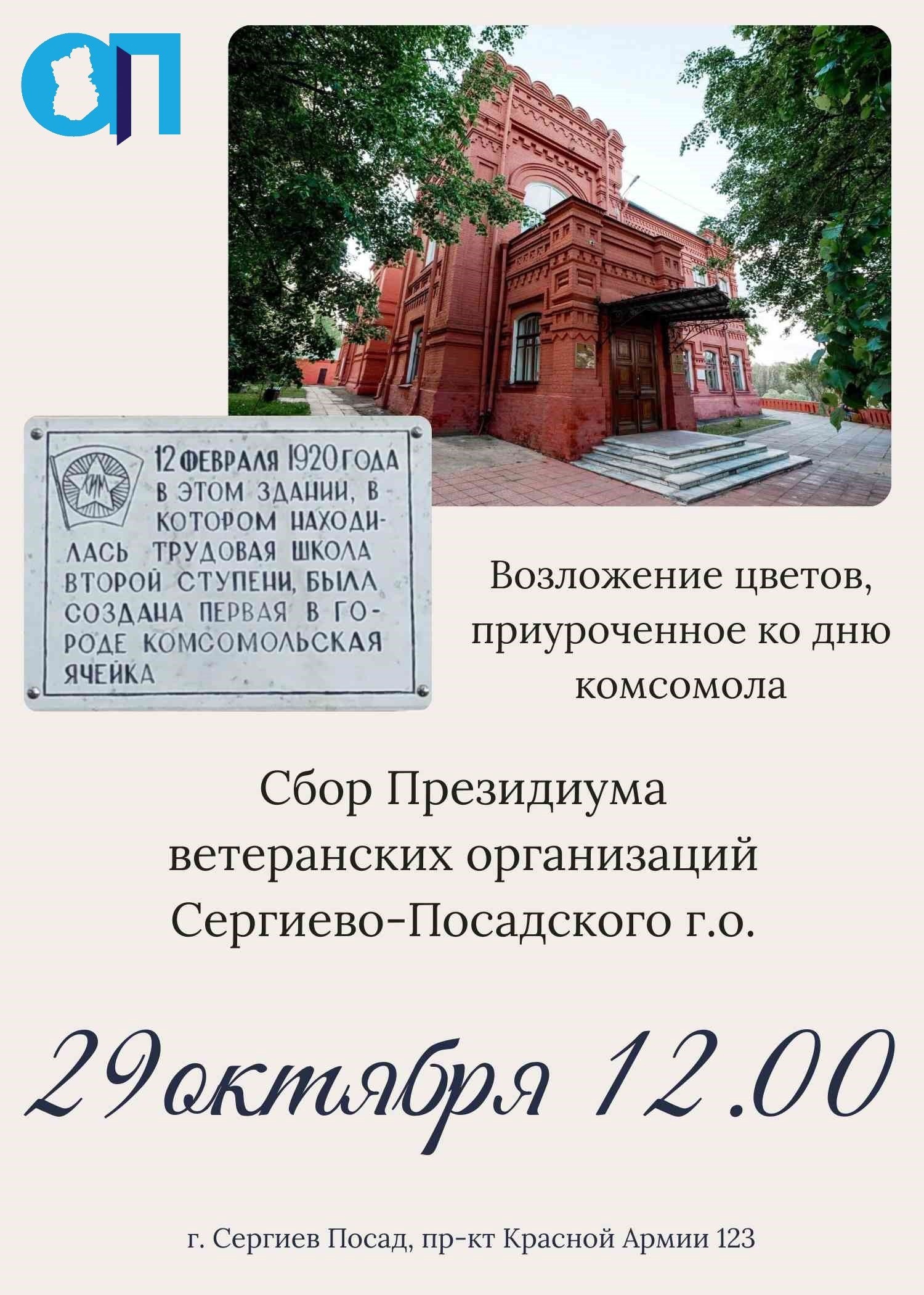Сбор Президиума ветеранских организаций Сергиево-Посадского городского округа, возложение цветов приуроченное ко дню комсомола