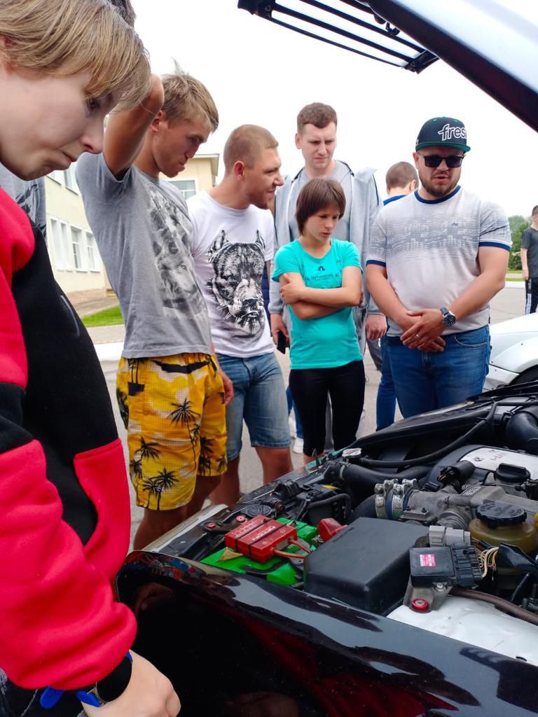 После общения с ребятами они разрешили познакомиться поближе со своими спортивными автомобилями. Мальчишки и девчонки проявили к ним большой интерес. Им представилась возможность рассмотреть их поближе, посидеть за рулем, заглянуть под капот и, конечно же, прокатиться на них.
