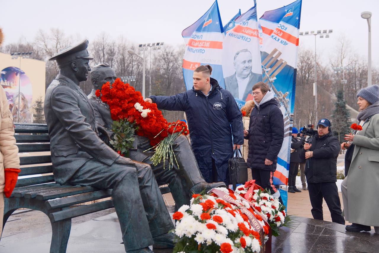 Сегодня студенты Технологического университета им. А.А. Леонова приняли участие в торжественном возложении цветов к памятнику Сергея Павловича Королёва и Юрия Алексеевича Гагарина «Звездные люди Земли», посвященном 118-летию со дня рождения Сергея Павловича Королёва.