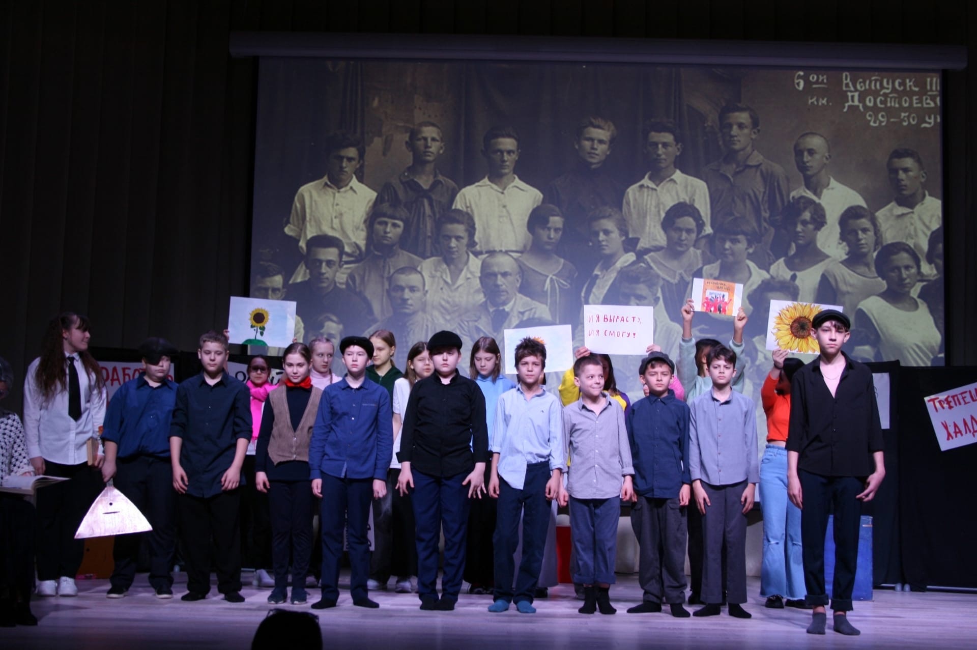 Прежде, чем приступить к постановке спектакля, мы с ребятами посмотрели советский фильм «Республика Шкид», созданный в 1966 году режиссёром Геннадием Полокой, узнали историю нашей страны 100 лет назад и посетили Детский музыкальный театр юного актера, в котором сейчас проходит прекрасный мюзикл по одноименной повести.