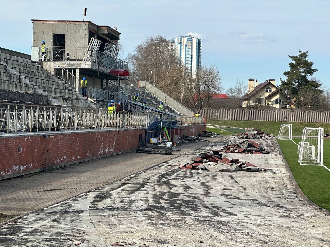 Во время проведенной проверки на объекте трудилось 28 рабочих, а все работы находились в активной фазе. Как сообщил представитель подрядчика, до конца осени текущего года планируется обновить гидроизоляцию трибуны, после чего будут отремонтированы подтрибунные помещения (раздевалки, административные комнаты и иные служебные помещения).