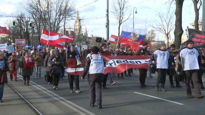 Жители столицы Австрии ранее вышли на улицы города с протестной акцией. Люди уверены, что остановить конфликт можно без применения оружием. Протестующие напомнили лидерам европейских государств, что столь истощающая война не выгодна никому, ни ЕС, ни Украине. Но Вена от Мюнхена далеко.
