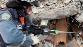 В МЧС добавили, что мобильным группам, сформированным из состава отряда "Центроспас", помогает кинологический расчет. Во время обследования конструкций зданий специалисты активно применяют эндоскопы, тепловизоры и акустические приборы поиска.