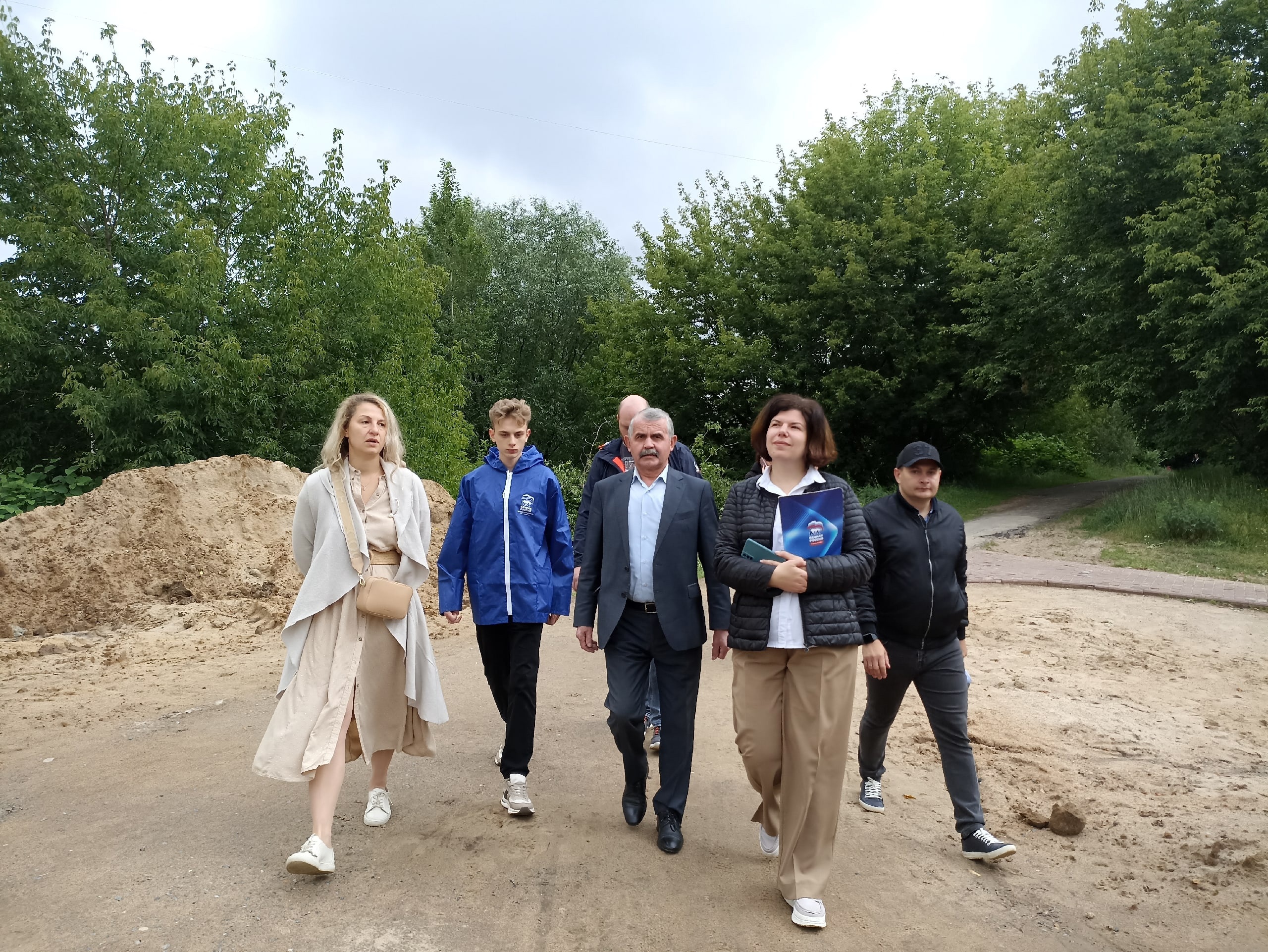 Депутат городского Совета Ксения Королёва совместно с коллегой из Мособлдумы Владимиром Шапкиным ознакомились с темпами благоустройства территории вокруг водоёма.