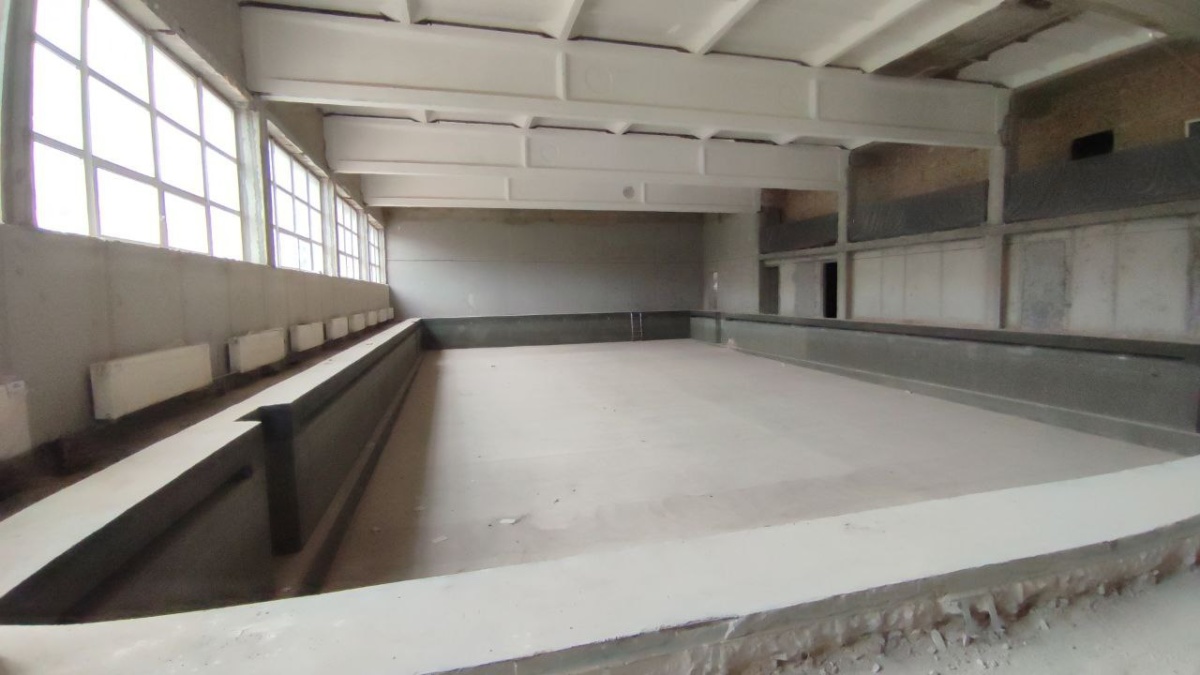 На объекте трудятся более 30 рабочих и 3 единицы техники. В здании отремонтируют крышу, фасад, спортивные залы, внутренние помещения спорткомплекса, заменят системы вентиляции и проведут реконструкцию чаш бассейна.