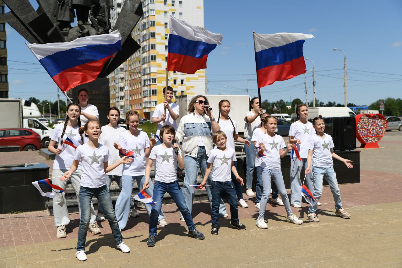 В завершении мероприятия состоялся флешмоб, запущенный в День России в Лосино-Петровском округе, в рамках него участники развернули 20-метровое полотно с флагом страны.