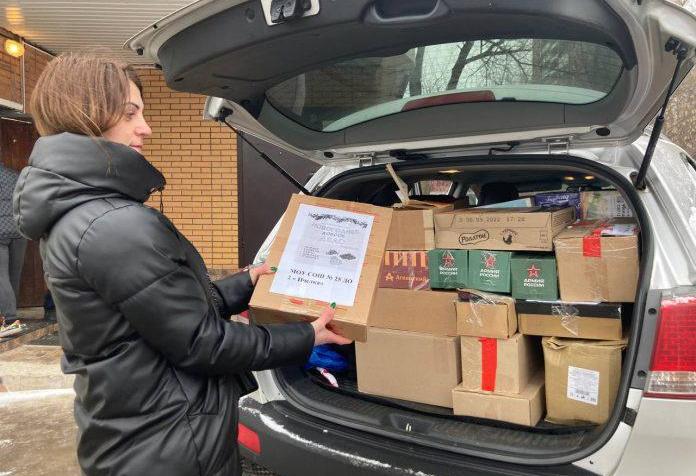 Собрали нашим военнослужащим продукты питания, бытовые инструменты, средства личной гигиены по просьбе Елены. Её сын сейчас отстаивает интересы Родины в зоне СВО. Также к нам обратилась супруга одного из мобилизованных – Светлана. Для её мужа, помимо продуктов, передали баллоны с газом и пленку.
