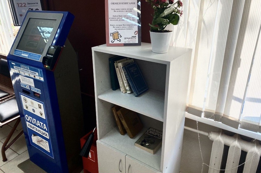 В МФЦ появились полки для обмена книгами. Теперь можно не только получать государственные и муниципальные услуги, но и взять понравившуюся книгу и насладиться чтением.
