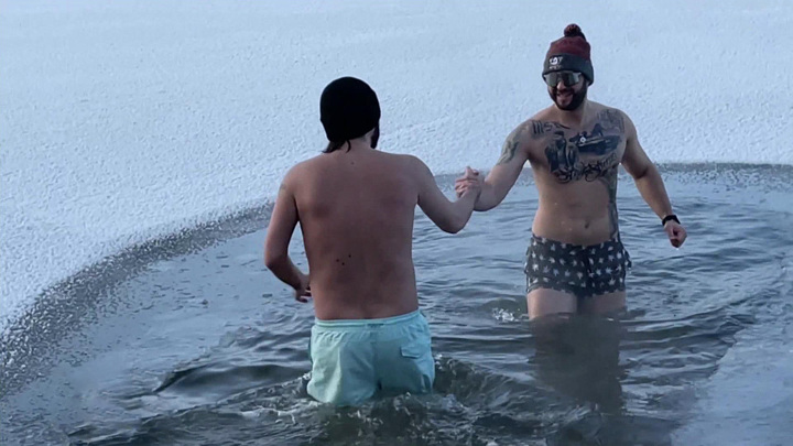 Одни катаются, другие купаются. Столичным моржам, чем крепче мороз, тем лучше. Чтобы понятно было, какая температура – вода замерзает практически сразу.