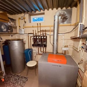 Отопление газовое - договор на обслуживание Королевское газовое хозяйство, котел Vissman Vitogas; вода центральная - система очистки воды в котельной и обратный осмос на кухне; канализация септик (вывоз два раза в год- 1800 руб), электричество центральное, стоит стабилизатор напряжения; интернет проводной; охрана Дельта.