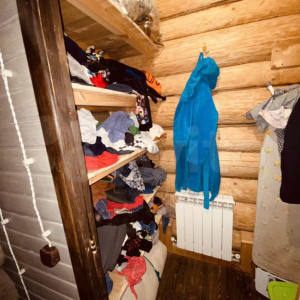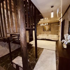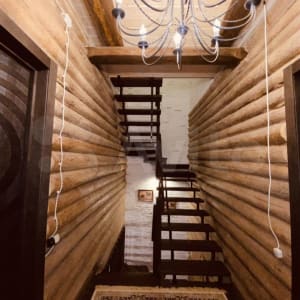 4 этажа из них: цокольный этаж, в котором располагается две комнаты - одна полноценная спальня с санузлом (душ и туалет) - 25 м. и кованной кроватью; комната для сушки и хранения белья (ну у меня так) - 12 метров; гардеробная - 10 метров; котельная, она же помещение для хранения инструментов, прачечная. Большой хол.