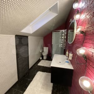3 этаж - две хозяйские спальни : одна с кованной кроватью, ванной и туалетом; вторая - душ и туалет.